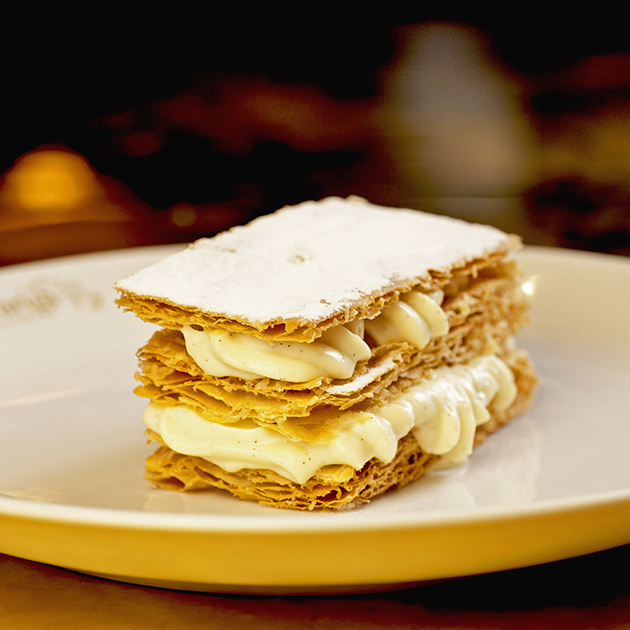 Experimente o tartar de robalo (R$44) e ostras frescas com taça de Jerez Tio Pepe (R$32). Como principal, peça o tournedos rossini (Filé Mignon e Foies Gras Grelhados, Trufas Negra sobre Brioche e Aspargos, R$138) e Magret ao Molho de Laranja e Purê de Maçã sobre Repolho Roxo (R$78). Após, um petit gateau, mil folhas de chocolate, profiteroles de chocolate ou terrine de três Chocolates (R$46).