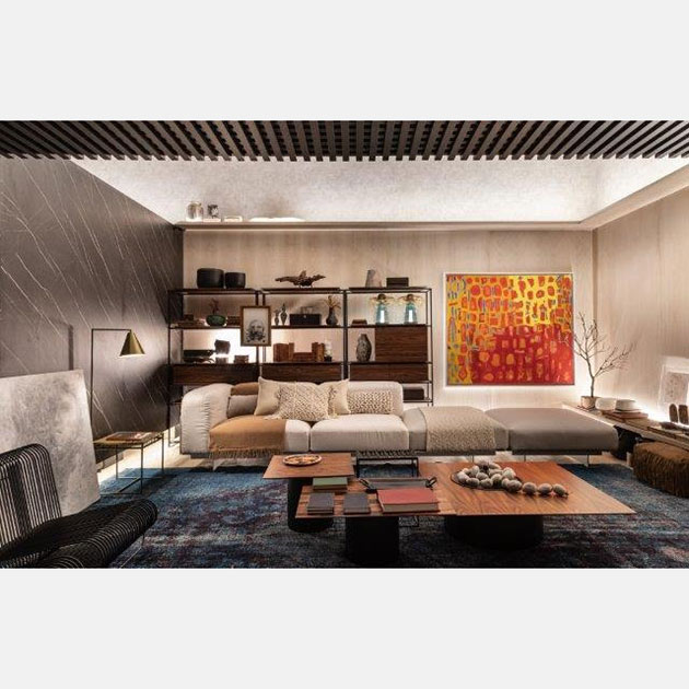 Em sua estreia na Casacor São Paulo, o Studio Alex Bonilha criou o “Espaço Ser“, um living de 60m² traduzido por materiais naturais e ecológicos que trabalha a busca das conexões humanas como prioridade, sendo o ambiente o instrumento de recuperação e reencontro das pessoas com seus centros. No espaço, o arquiteto e a designer Mahely Oliveira mantiveram o teto original do Jockey, com o intuito de trazer a história do prédio tombado. Assim, o destaque fica para a paleta de cores em tons terrosos presente na treliça alocada logo na entrada. Além disso, alguns toques de cores fortes completam o layout e aparecem no verde petróleo do tapete e na obra de Siron Franco, concebendo, assim, uma essência viva e vibrante para o espaço.