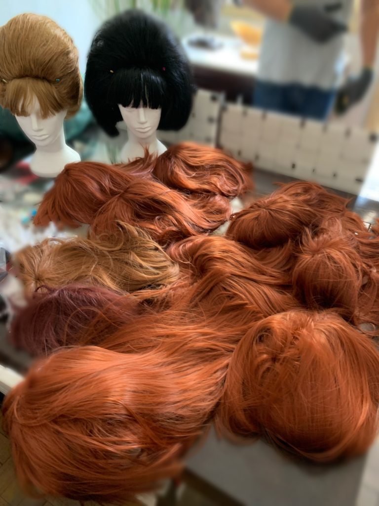 Perucas de Rita Lee em exposição – Foto: Guilherme Samora