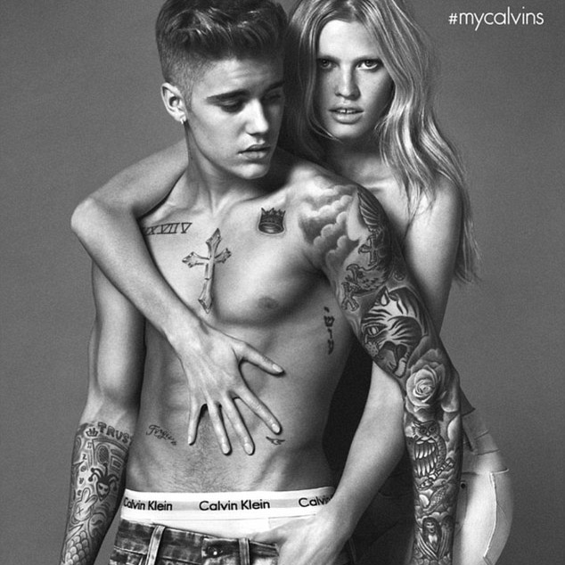 Justin Bieber posa ao lado de Lara Stone em campanha da Calvin Klein