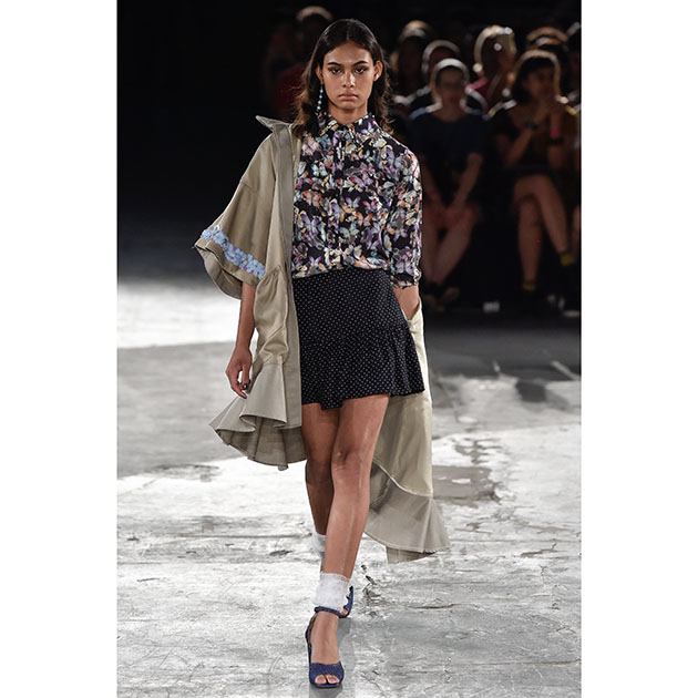 Ao som da banda paulistana Mustache e os Apaches – que se apresenta ao vivo, na passarela -, a estilista reproduz, na expressão de cada modelo, o realismo e o improviso desta vertente musical. Vestidos, casacos e conjuntos traduzem esse mood e exercem o papel de uniformes românticos, urbanos e atuais.