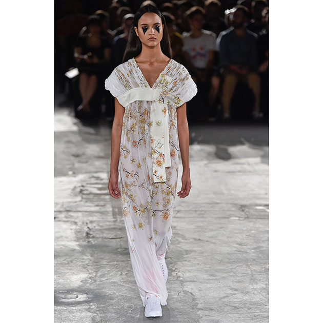 O designer Weider Silveiro trouxe para a passarela da Casa de Criadores uma coleção inspirada no Japão, mas bem diferente dos orientalismos que estamos acostumados a ver por aí. Em alguns momentos, a impressão é bem futurista (principalmente nas tramas e no aspecto dos materiais – muito asseados, quase frios). Em outros, de leveza e até uma certa melancolia (vide as estampas fofas de flor de cerejeira).